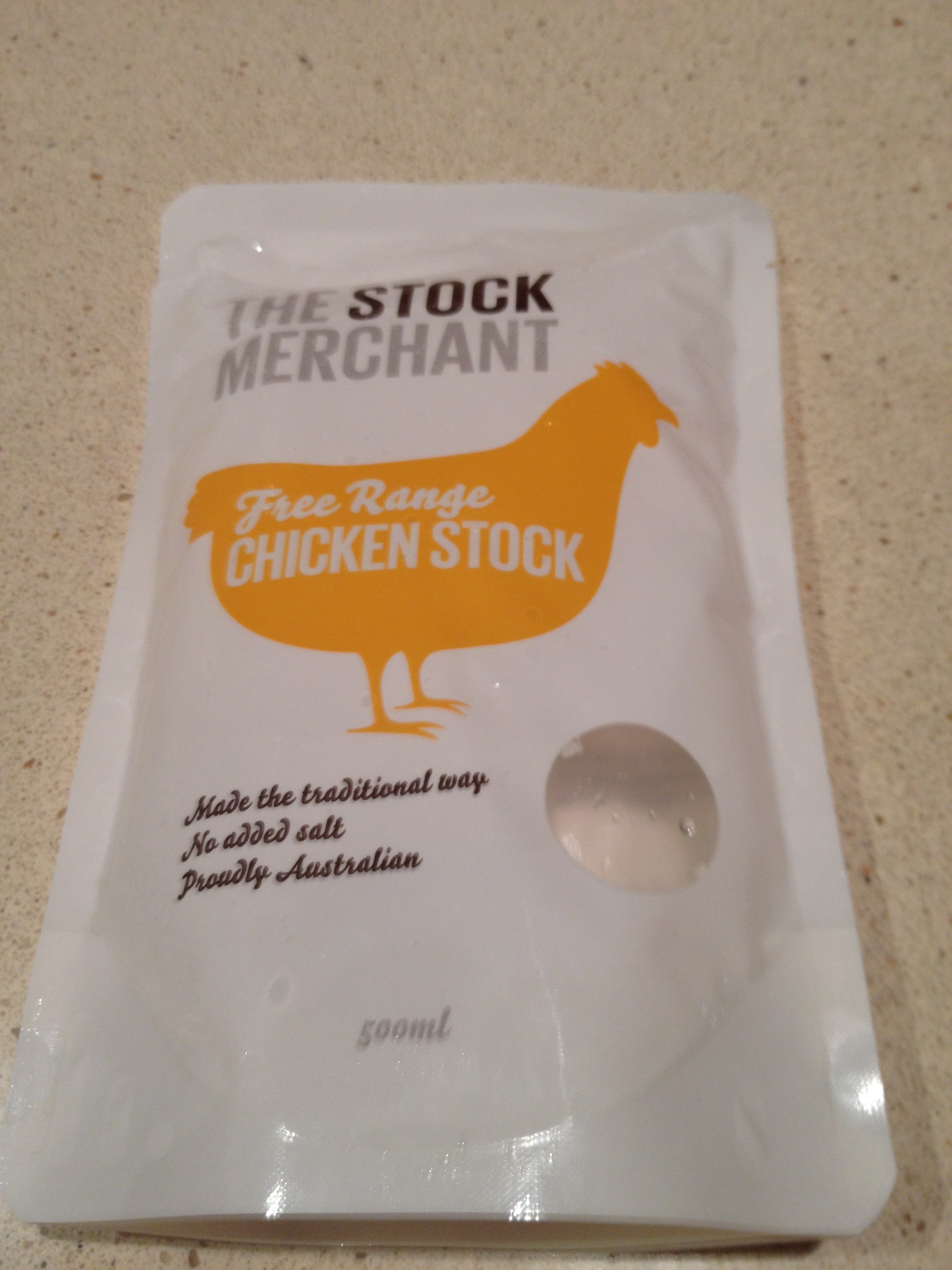 Here’s a delicious recipe made with a great new free range chicken stock being sold through the Mushroom Depot at the Farmers Markets. It is preservative free and salt free. They also have a natural crab stock and vegetable stock.
